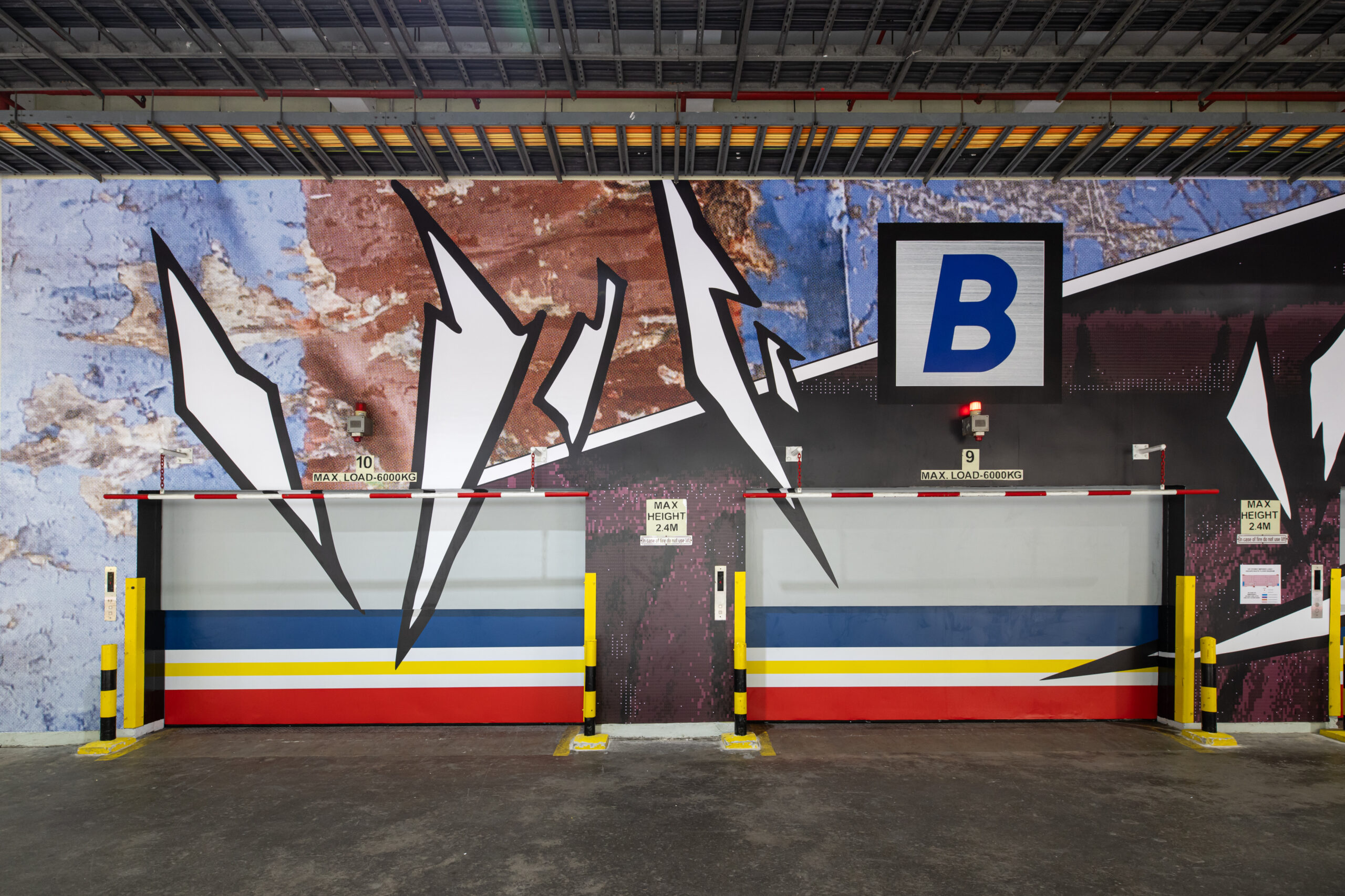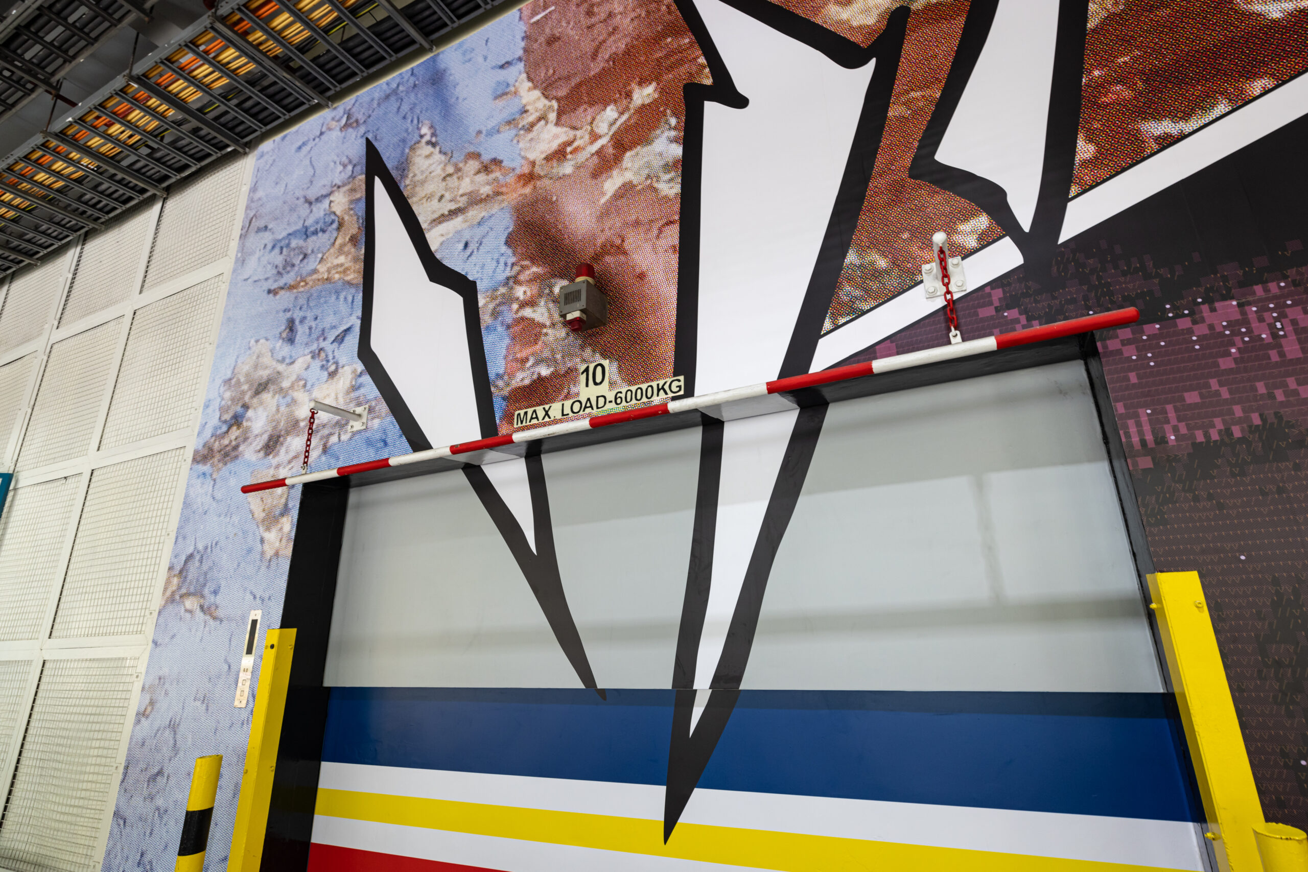 DEEP CUTS transforms the materials and surfaces of the artist’s studio into a striking visual narrative. Drawing from the surroundings that shape the artist’s practice, as well as the industrial character of the mural’s site, it reassembles fragments of raw, utilitarian materials and textures into a cohesive composition. Structured like a graphic novel, the work features panels connected by action lines and a rhythm that guides the viewer’s gaze.