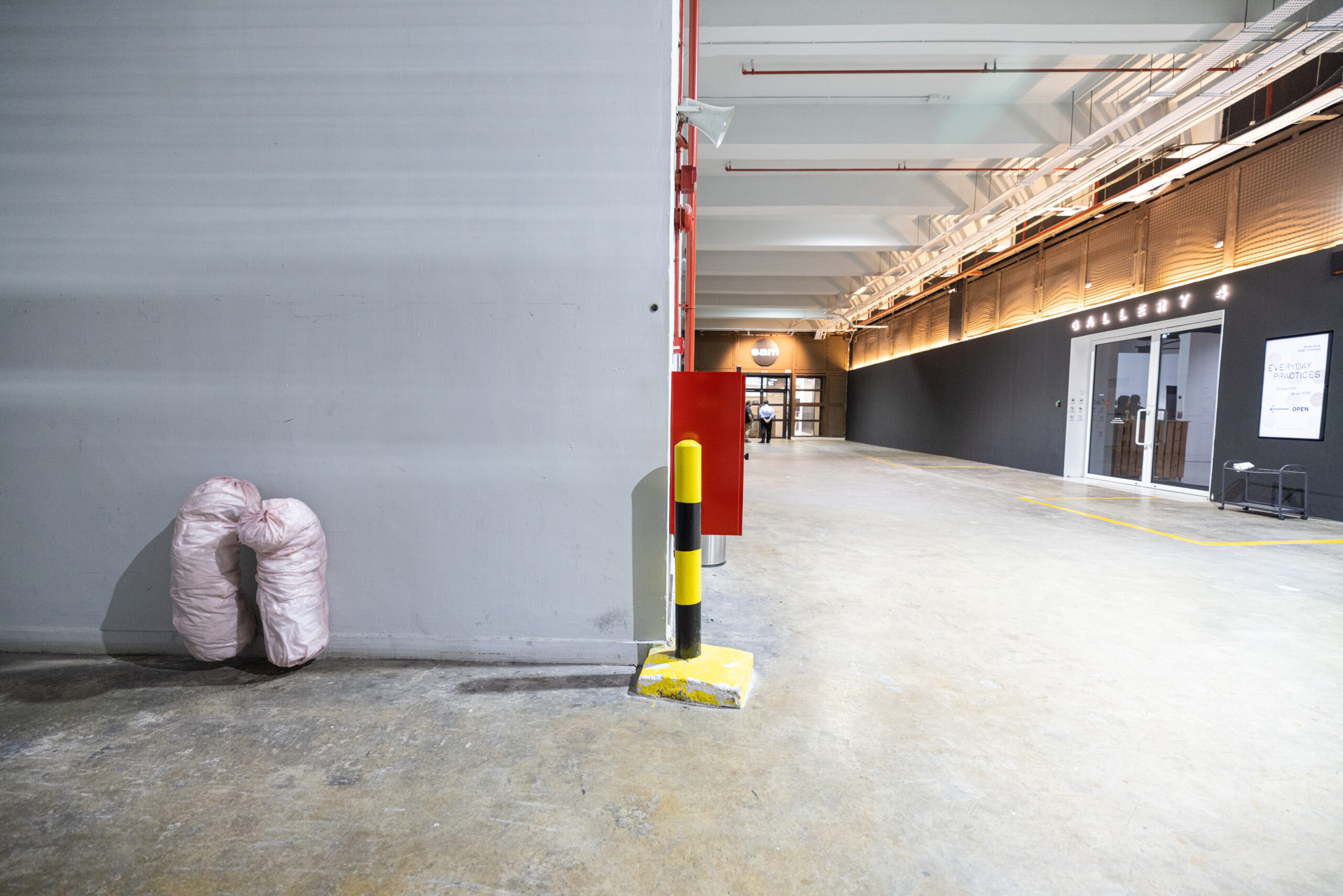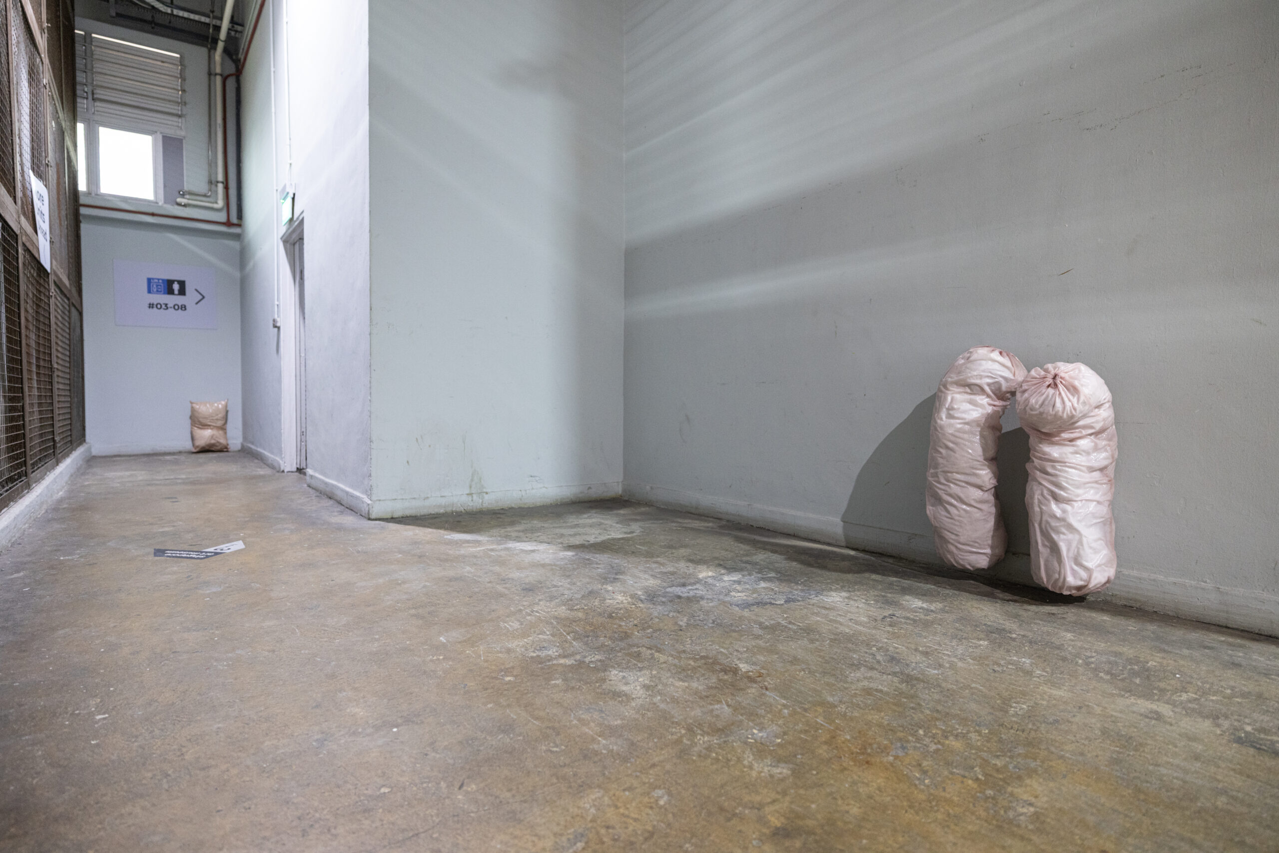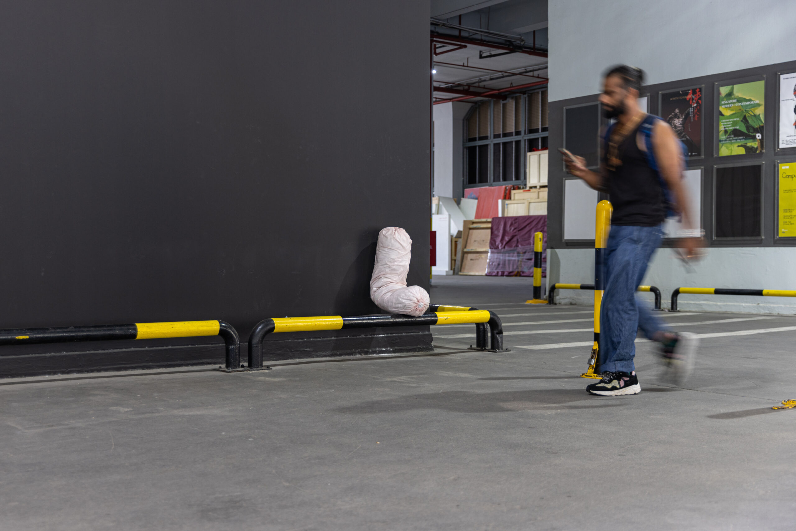 Insomniac States is a series of sculptural interventions that respond to the restlessness of Tanjong Pagar Distripark. As a functioning logistics and arts hub, the Distripark is a place of constant movement, where trucks unload cargo, forklifts navigate narrow lanes and workers cross paths. Modelled after objects of rest—pillows, bolsters and cushions that resemble mattresses—the sculptures are scattered across the site, slumped, wedged or nestled into crevices. In a setting defined by function and flow, Chong inserts a quiet interruption: a call to pause.