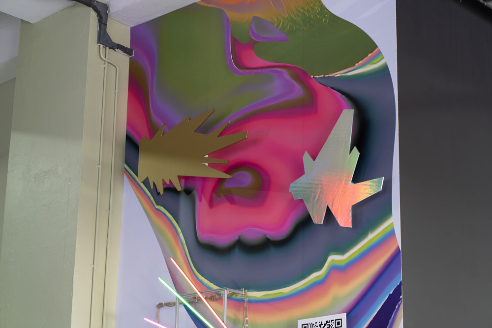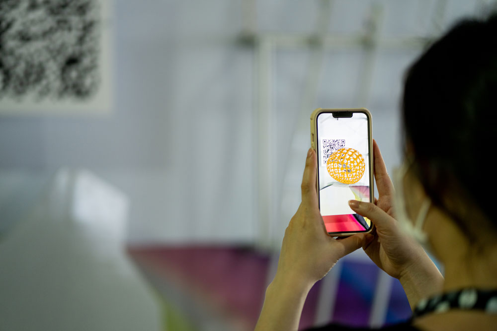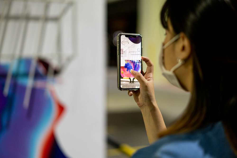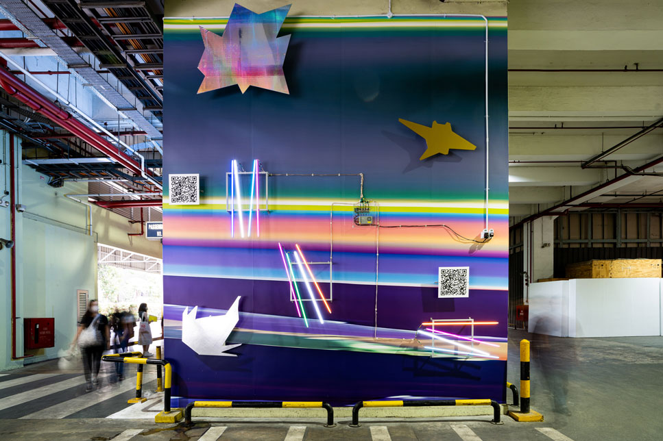 The installation is also a reflection of the increasingly digitalised world where technology has become a key mediator of human experiences – the large-scale vinyl print of an abstract image of the Blue Mountain is generated by a computer program, animated by a series of light fixtures; a set of QR codes further extend the physical experience of the work into a virtual space. Visitors are invited to scan the QR codes for 3D micro-experiences through which they can explore and interact with the relief objects as well as capture and share their experience through the use of selfies. The digital content will be refreshed quarterly by other local artists invited by the Schlegels. This, and other potential activations, not only offer viewers new encounters with the work but also open it up to an organic and evolving process of improvisation and adaptations.