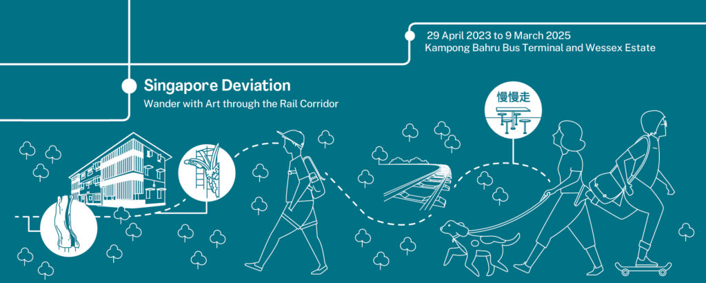 Singapore Deviation calls attention to the shifting publics and uses of the Rail Corridor . The series sets up an encounter with a range of figures, messages and sensations that constitute the multi-faceted experience of the Rail Corridor. Each artist reanimates the physical site, considering the Rail Corridor not just as a space of transit but as a constantly changing space, with an ambiguous status and uncertain future. These works invite new perspectives on the diverse social, historical, and ecological relationships that determine the continued relevance of this historic railway track.